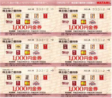 (7616)コロワイド・・・・優待券1000円が10枚(半期20枚)