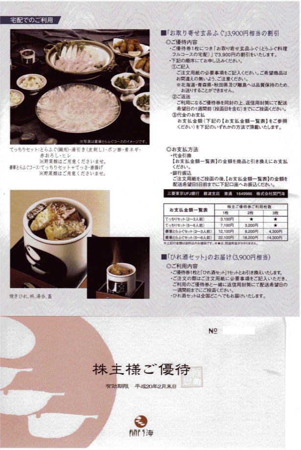 優待内容は最低単位のものです、私の保有株数の優待内容とは一致いたしません。