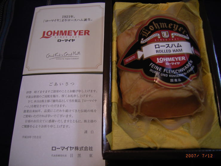 ローマイヤの優待はロースハムでした。