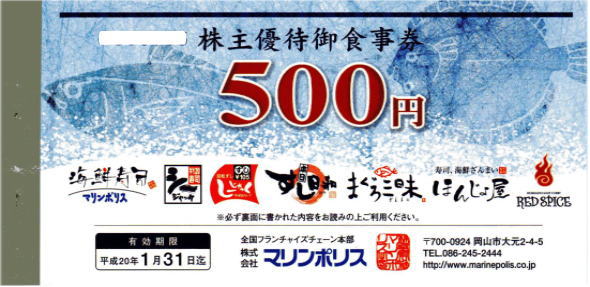 本日最後の優待券が届きました。(TOBにより上場廃止)