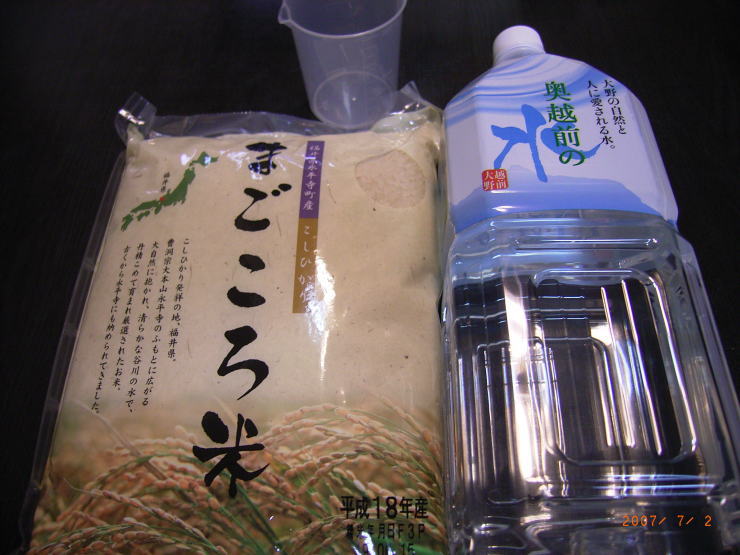 今回はお米1.5kgと水2ℓ、おまけに計量カップが入っていました。