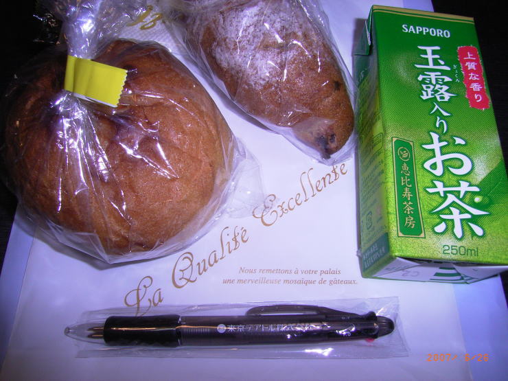 入り口で封筒と、軽食のパンとドリンクを渡されました。