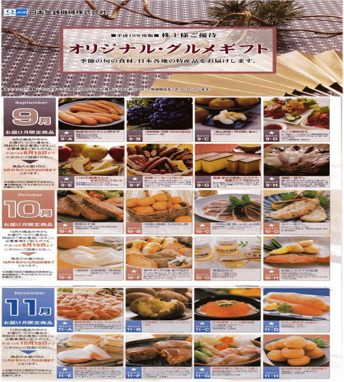 9月決算ですが、中間決算時にも優待があります。